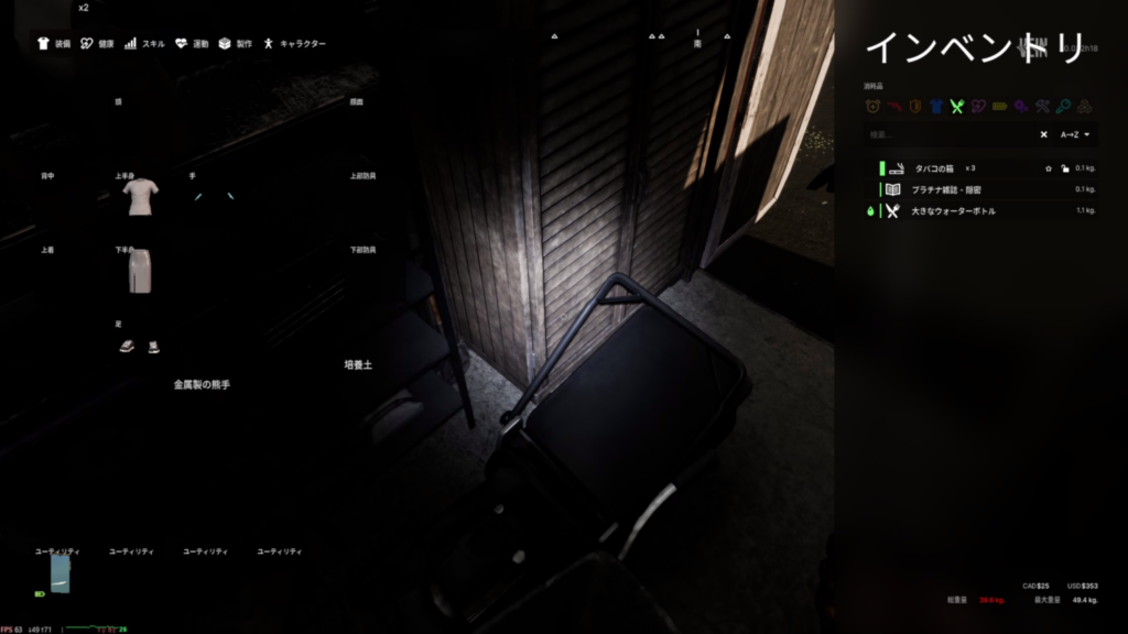 序盤は持てる重量がかなり少ない。
