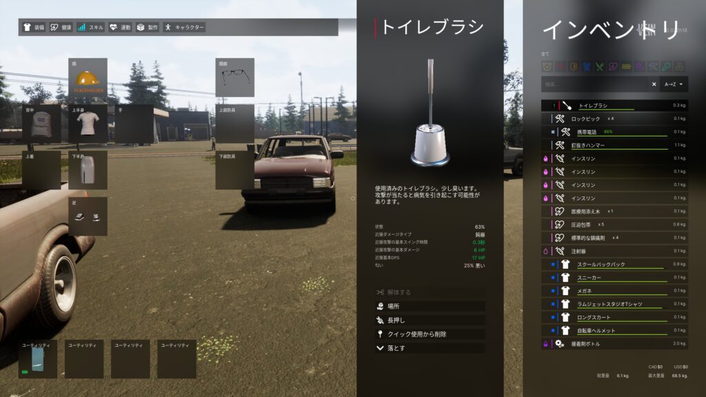 最初に持っているトイレのスッポンでゾンビに挑戦。